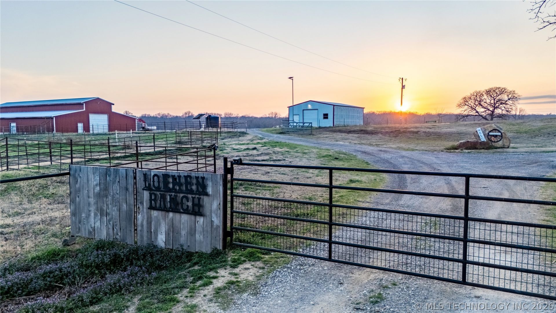 This 370+/- acre ranch in Pontotoc County offers a rare combination of productive pasture, mature timber, quality water features, and a beautiful custom home set on a scenic hilltop. Located at the end of a quiet dead-end county road, the property provides privacy while remaining conveniently accessible. The custom home, built in 2022, offers approximately 2,530 square feet per tax records with additional sunroom and upstairs space. The 4-bedroom, 2-bath home features spacious living areas, large picture windows overlooking the ranch, high ceilings, a well-designed kitchen, and an oversized pantry. The land is well suited for livestock operations with approximately 280 acres of pasture and 90 acres of timber. Nearly 100 acres consist of Class II silt loam soils supporting productive native and improved grasses. The ranch is divided into 10 pastures with tight perimeter and cross fencing, much of which has been recently installed, allowing for rotational grazing. A solar-powered water well supplies multiple hydrants across paddocks, while rural water services the home. Leader Creek runs through the property for approximately 1.3 miles, adding both scenic value and livestock water access. Additional improvements include a 60'x120' barn, a 30'x40' shop with plumbing and electric, a 40'x120' open barn with concrete floor, and working pens. Two stocked ponds (one approximately 2 acres) provide fishing and additional water sources. The mix of pasture, creek bottom, and mature hardwoods supports wildlife including white-tailed deer, turkey, dove, and waterfowl. The property is located approximately 11 minutes from Tupelo, 25 minutes to Ada, about 100 minutes to Oklahoma City, and roughly 2.5 hours to both Dallas and Tulsa metro areas. This ranch offers a combination of productive agricultural use, recreation, and comfortable country living.
